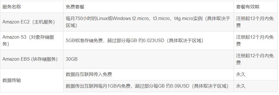 由于亞馬遜云科技服務種類較多,且計費詳細,很多用戶有些看不懂,所以對使用亞馬遜云望而卻步。其實亞馬遜云科技很多服務都有免費套餐,以讓用戶體驗,這些服務的免費套餐,搭建一個私人網(wǎng)盤綽綽有余。由于亞馬遜云海外區(qū)僅需個人信用卡就可以注冊,所以我們以海外區(qū)為例。我們可以從以下鏈接亞馬遜AWS海外區(qū)域賬戶免費套餐_免費云服務-AWS云服務 看到亞馬遜云哪些服務具備免費套餐: